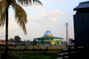 In the taxi from Samarinda to Balikpapan yesterday morning, I passed a large and gorgeous mosque (not the one pictured). Illuminated by the copper-toned morning sunlight, a lively crowd buzzed and bustled in front of the mosque grounds: a large, sweatsuit-clad group moving in synchrony through various aerobics exercises; eager consumers clustering around food carts; families milling around.